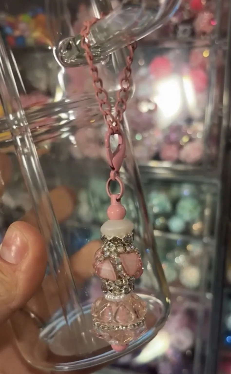 Each charm is carefully crafted with beautiful pink beads and rhinestone spacers to create a cute, girly, and eye-catching accessory. The charm easily clips onto your cup handle, straw, or tumbler, adding the perfect touch of glam while making your drink stand out.